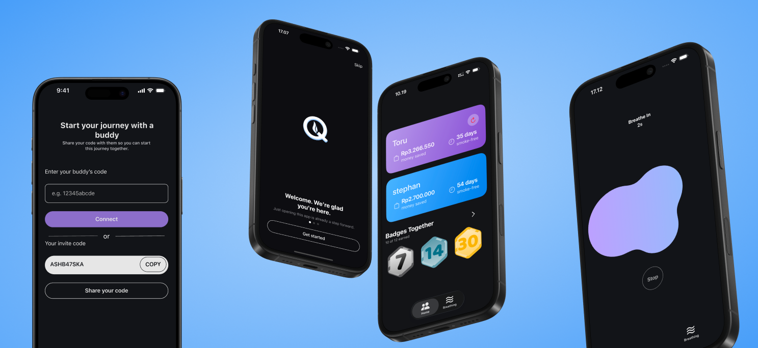 Quiby addresses this challenge by transforming smoking cessation into a shared, collaborative experience. The app introduces a buddy-based system that pairs users together, allowing them to track progress, earn achievements, and stay accountable as a team rather than as individuals.